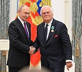 Церемония вручения государственных наград и премии президента России за вклад в укрепление единства российской нации в Екатерининском зале Сенатского дворца Кремля. Независимый журналист при Ассоциации иностранной прессы в Италии, председатель итальянского отделения Международного движения русофилов, гражданин Италии Элизео Бертолази во время церемонии.