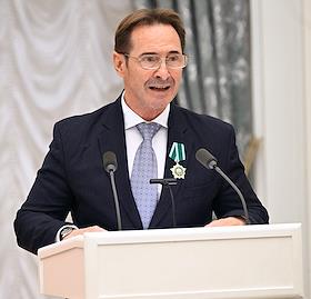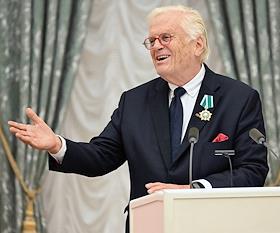 Церемония вручения государственных наград и премии президента России за вклад в укрепление единства российской нации в Екатерининском зале Сенатского дворца Кремля. Пианист, дирижер, гражданин Германии Юстус Франц во время церемонии.