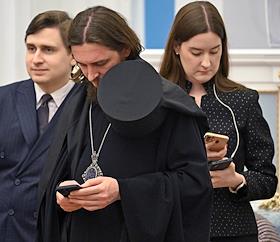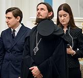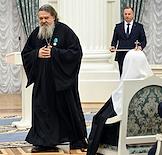 Церемония вручения государственных наград и премии президента России за вклад в укрепление единства российской нации в Екатерининском зале Сенатского дворца Кремля. Клирик Свято-Елисаветинского женского монастыря Минской епархии Белорусского Экзархата Московского Патриархата, протоиерей, гражданин Белоруссии Андрей Лемешонок во время церемонии.