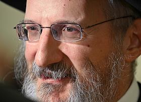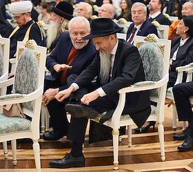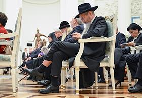 Церемония вручения государственных наград и премии президента России за вклад в укрепление единства российской нации в Екатерининском зале Сенатского дворца Кремля. Главный раввин Федерации еврейских общин России Берл Лазар перед началом церемонии.