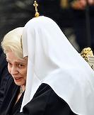 Церемония вручения государственных наград и премии президента России за вклад в укрепление единства российской нации в Екатерининском зале Сенатского дворца Кремля. Президент Русского общественного фонда Александра Солженицына Наталья Солженицына (слева) и патриарх Московский и Всея Руси Кирилл (справа) перед началом церемонии.