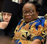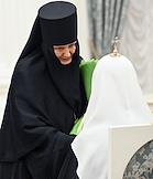 Церемония вручения государственных наград и премии президента России за вклад в укрепление единства российской нации в Екатерининском зале Сенатского дворца Кремля. Настоятельница Свято-Рождество-Богородичного ставропигиального женского монастыря в городе Гродно Белорусского экзархата Московского патриархата, гражданка Белоруссии, игумения Гавриила (слева) перед началом церемонии.