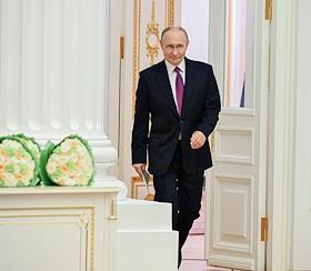 Церемония вручения государственных наград и премии президента России за вклад в укрепление единства российской нации в Екатерининском зале Сенатского дворца Кремля. Президент России Владимир Путин во время церемонии.
