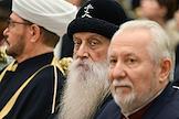 Церемония вручения государственных наград и премии президента России за вклад в укрепление единства российской нации в Екатерининском зале Сенатского дворца Кремля. Митрополит Московский и всея Руси, предстоятель Русской православной старообрядческой церкви Корнилий (в центре) и начальствующий епископ Российского объединенного союза христиан веры евангельской (пятидесятников) Сергей Ряховский (справа) во время церемонии.
