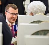 Церемония вручения государственных наград и премии президента России за вклад в укрепление единства российской нации в Екатерининском зале Сенатского дворца Кремля. Заместитель председателя Российского совета Централизованной религиозной организации Древлеправославной поморской церкви Андрей Клямко перед началом церемонии.