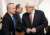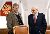 Расширенное заседание Экспертного Совета при комитете Государственной думы (ГД) России по международным делам на тему: "Трансатлантическое давление на Россию: ближайшие перспективы и пределы эскалации" в ГД России. Заместитель министра иностранных дел России Сергей Рябков (справа) и директор по научной работе Фонда развития и поддержки Международного дискуссионного клуба "Валдай" Федор Лукьянов (слева) во время заседания.