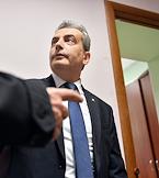 Заместитель председателя регионального отделения партии "Яблоко" Лев Шлосберг (признан иноагентом), обвиняемый в уклонении от исполнения обязанностей, предусмотренных законодательством Российской Федерации об иностранных агентах, перед началом заседания суда в Судебном участке № 38.