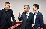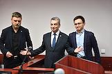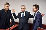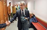 Заседание суда по делу заместителя председателя регионального отделения партии "Яблоко" Льва Шлосберга (признан иноагентом), обвиняемого в уклонении от исполнения обязанностей, предусмотренных законодательством Российской Федерации об иностранных агентах, в Судебном участке № 38. Слева направо: адвокат Владимир Данилов, заместитель председателя регионального отделения партии "Яблоко" Лев Шлосберг (признан иноагентом) и адвокат Виталий Исаков во время заседания.