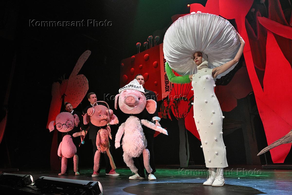Спектакль режиссера Кирилла Вытоптова "Три поросенка. Ой" по мотивам английской сказки в переводе поэта Сергея Михалкова на сцене "Театра на Таганке".