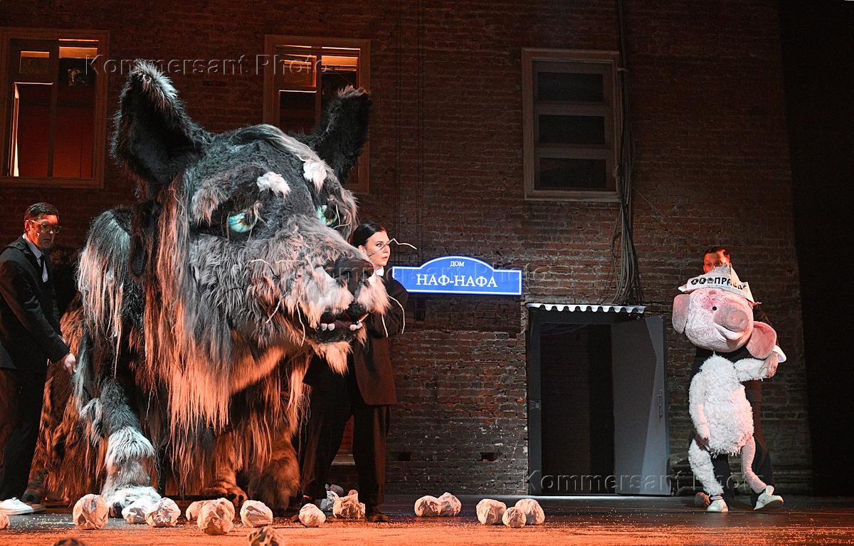 Спектакль "Три поросенка. Ой" по мотивам английской сказки в переводе поэта Сергея Михалкова, постановка режиссера Кирилла Вытоптова на сцене "Театра на Таганке".