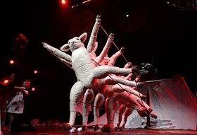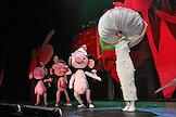 Спектакль режиссера Кирилла Вытоптова "Три поросенка. Ой" по мотивам английской сказки в переводе поэта Сергея Михалкова на сцене "Театра на Таганке".