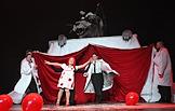 Спектакль режиссера Кирилла Вытоптова "Три поросенка. Ой" по мотивам английской сказки в переводе поэта Сергея Михалкова на сцене "Театра на Таганке". Режиссер Кирилл Вытоптов (второй слева) и актер Сергей Епишев (второй справа) на спектакле.