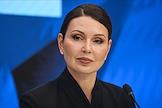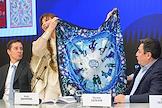Дискуссия на тему "Сначала ценности, потом бизнес" в пресс-центре МИА "Россия сегодня". Автор и руководитель международной программы сохранения исторической памяти и укрепления мира "Синий платочек", основатель бренда шелковых платков "Русская земля" Анна Данилова во время дискуссии.