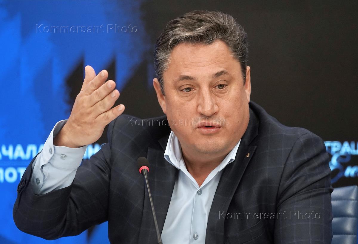 Дискуссия на тему "Сначала ценности, потом бизнес" в пресс-центре МИА "Россия сегодня". Победитель конкурса "Лидеры России", руководитель клуба водных видов спорта Центрального Банка России Эдуард Салахов во время дискуссии.
