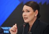 Дискуссия на тему "Сначала ценности, потом бизнес" в пресс-центре МИА "Россия сегодня". Основатель Центра интеграции ценностей в бизнес Елена Провиз во время дискуссии.