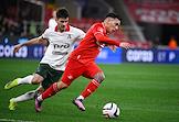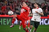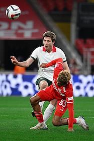 Фонбет - Кубок России по футболу 2025/26. 1/4 финала. Матч между командами "Спартак" (Москва) - "Локомотив" (Москва) на стадионе "Лукойл Арена". Игрок команды "Спартак" Олег Рябчук (справа) во время матча.