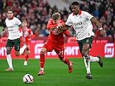 Фонбет - Кубок России по футболу 2025/26. 1/4 финала. Матч между командами "Спартак" (Москва) - "Локомотив" (Москва) на стадионе "Лукойл Арена". Игрок команды "Спартак" Ливай Гарсия (слева) и игрок команды "Локомотив" Лукас Фассон (справа) во время матча.