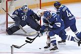 Континентальная Хоккейная Лига (КХЛ). Матч между командами "Динамо" (Москва) - "Лада" (Тольятти) на стадионе "ВТБ Арена". Вратарь команды "Динамо" Владислав Подъяпольский (в центре) во время матча.