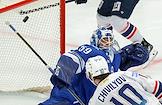 Континентальная Хоккейная Лига (КХЛ). Матч между командами "Динамо" (Москва) - "Лада" (Тольятти) на стадионе "ВТБ Арена". Вратарь команды "Лада" Иван Бочаров во время матча.