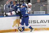 Континентальная Хоккейная Лига (КХЛ). Матч между командами "Динамо" (Москва) - "Лада" (Тольятти) на стадионе "ВТБ Арена". Вратарь команды "Динамо" Владислав Подъяпольский (слева) и игрок команды "Лада" Кирилл Жуков (справа) во время матча.