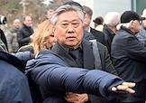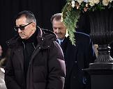 Церемония прощания с телеведущим Юрием Николаевым на Троекуровском кладбище. Вице-президент по материально-техническому обеспечению ПАО "НК "Роснефть" Сергей Цой (слева) во время церемонии.