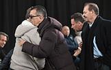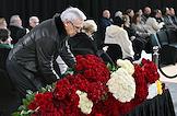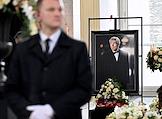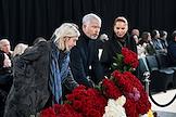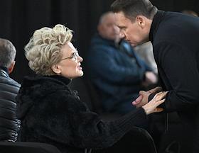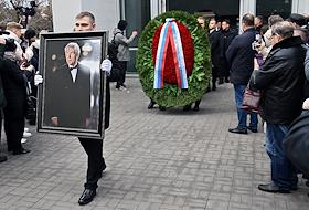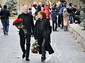 Церемония прощания с телеведущим Юрием Николаевым на Троекуровском кладбище. Первый заместитель председателя комитета Государственной думы России по экологии, природным ресурсам и охране окружающей среды Вячеслав Фетисов (в центре) и его супруга Лада Фетисова (справа) на церемонии.