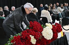 Церемония прощания с телеведущим Юрием Николаевым на Троекуровском кладбище. Композитор Игорь Николаев на церемонии.