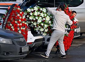 Церемония прощания с телеведущим Юрием Николаевым на Троекуровском кладбище. Солист группы "Моральный кодекс" Сергей Мазаев на церемонии.