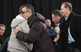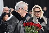 Церемония прощания с телеведущим Юрием Николаевым на Троекуровском кладбище. Первый заместитель председателя комитета Государственной думы России по экологии, природным ресурсам и охране окружающей среды Вячеслав Фетисов (слева) и его супруга Лада Фетисова (справа) на церемонии.