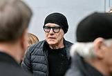 Церемония прощания с телеведущим Юрием Николаевым на Троекуровском кладбище. Директор дирекции музыкального вещания телекомпании "Первый канал" Юрий Аксюта на церемонии.