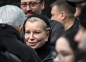 Церемония прощания с телеведущим Юрием Николаевым на Троекуровском кладбище. Дизайнер Оксана Ярмольник на церемонии.