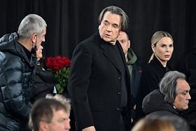Церемония прощания с телеведущим Юрием Николаевым на Троекуровском кладбище. Певец Александр Маршал на церемонии.