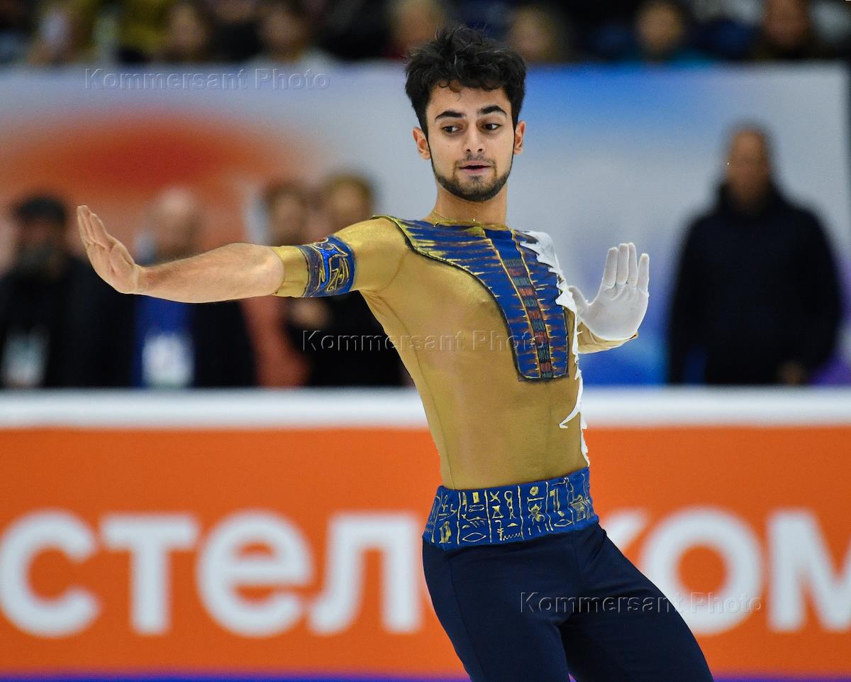 Гран-при России по фигурному катанию 2025/2026. 3-й этап "Идель" во Дворце спорта. Мужчины. Короткая программа. Фигурист Артур Даниелян во время выступления.