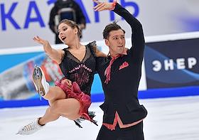Гран-при России по фигурному катанию 2025/2026. 3-й этап "Идель" во Дворце спорта. Спортивные пары. Короткая программа. Фигуристы Анна Карпук и Алексей Хвалько во время выступления.