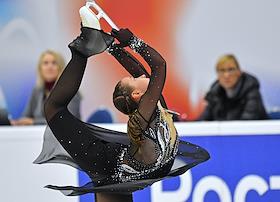 Гран-при России по фигурному катанию 2025/2026. 3-й этап "Идель" во Дворце спорта. Женщины. Короткая программа. Фигуристка Любовь Рубцова во время выступления.