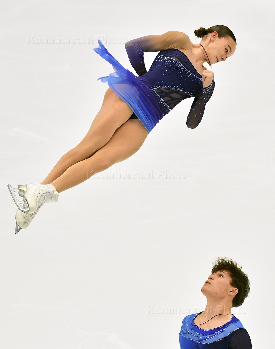 Гран-при России по фигурному катанию 2025/2026. 3-й этап "Идель" во Дворце спорта. Спортивные пары. Короткая программа. Фигуристы Майя Шегай и Андрей Шадерков во время выступления.