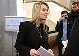 Парламентские слушания на тему "Совершенствование правового регулирования института уполномоченных по правам человека в Российской Федерации: новые вызовы, новые решения", организованные комитетом Государственной думы (ГД) России по развитию гражданского общества, вопросам общественных и религиозных объединений в ГД России. Певица, модельер, чемпионка мира по парафитнесу Анастасия Белковская (в центре) перед началом слушаний.