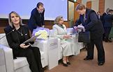Парламентские слушания на тему "Совершенствование правового регулирования института уполномоченных по правам человека в Российской Федерации: новые вызовы, новые решения", организованные комитетом Государственной думы (ГД) России по развитию гражданского общества, вопросам общественных и религиозных объединений в ГД России. Уполномоченный по правам человека в России Татьяна Москалькова (в центре) и певица, модельер, чемпионка мира по парафитнесу Анастасия Белковская (слева) на слушаниях.