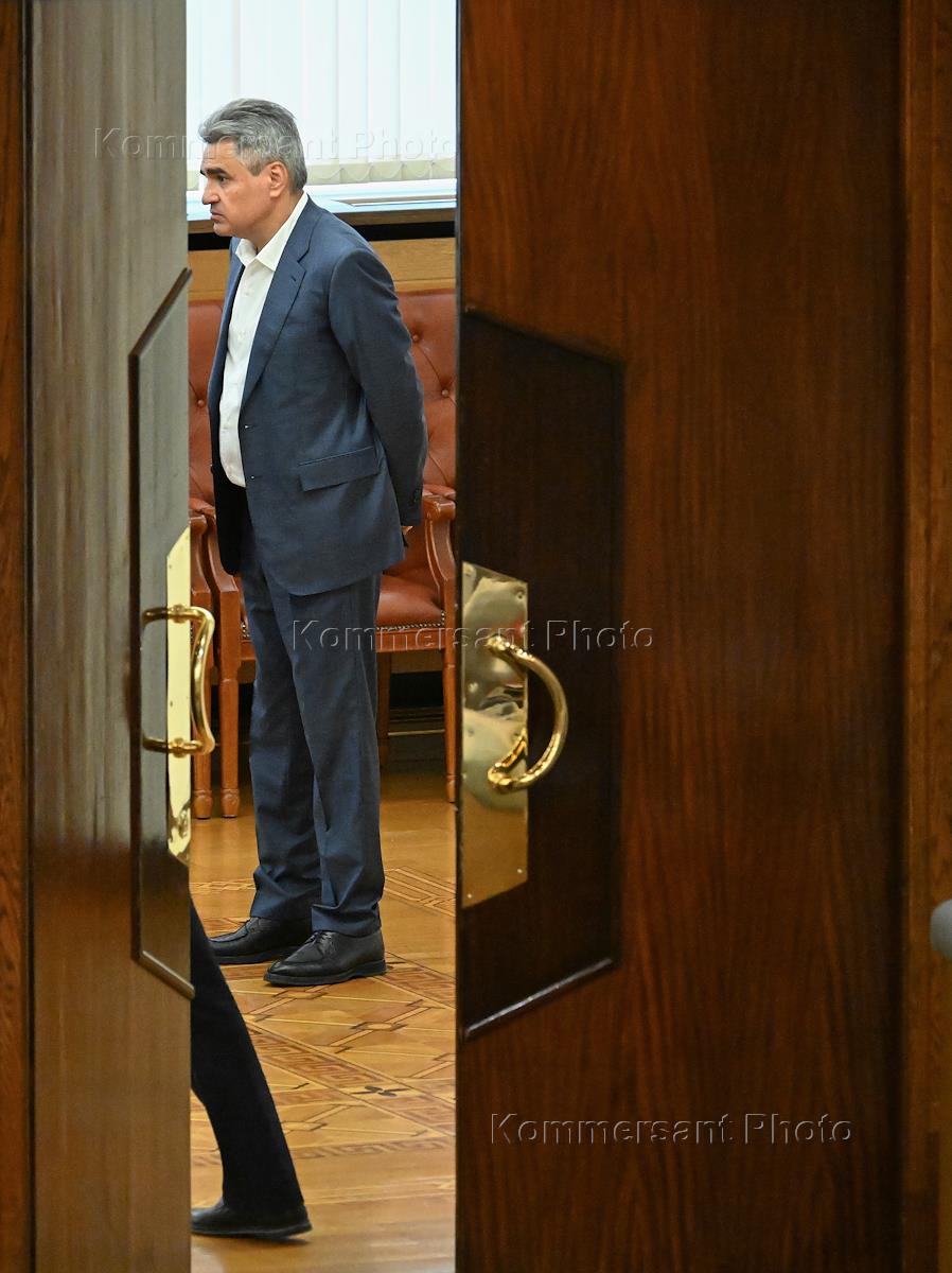 Пленарное заседание Государственной думы (ГД) России. Председатель ГД России Вячеслав Володин (в центре) и заместитель председателя правительства России Дмитрий Патрушев (слева) перед началом заседания.