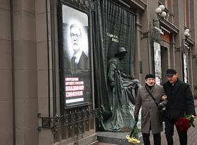 Церемония прощания с артистом Владимиром Симоновым в театре имени Евгения Вахтангова.