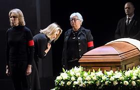 Церемония прощания с артистом Владимиром Симоновым в театре имени Евгения Вахтангова. Актриса Людмила Максакова (в центре) во время церемонии.
