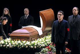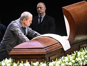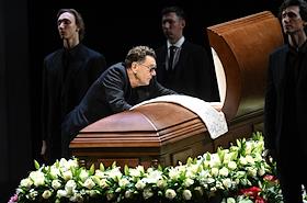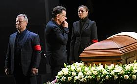 Церемония прощания с артистом Владимиром Симоновым в театре имени Евгения Вахтангова. Режиссер Павел Сафонов (слева) на церемонии.