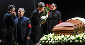 Церемония прощания с артистом Владимиром Симоновым в театре имени Евгения Вахтангова. Режиссер, продюсер Сергей Сенин (в центре) на церемонии.