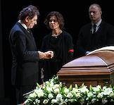Церемония прощания с артистом Владимиром Симоновым в театре имени Евгения Вахтангова. Актриса Юлия Рутберг (слева) и режиссер, продюсер Сергей Сенин (в центре) во время церемонии.