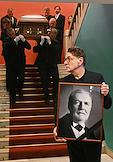 Церемония прощания с артистом Владимиром Симоновым в театре имени Евгения Вахтангова. Актер Александр Яцко (второй слева) и режиссер, продюсер Сергей Сенин (слева) на церемонии.