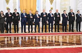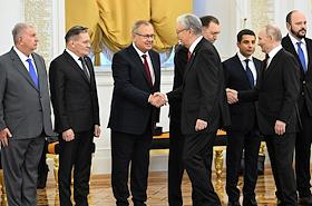Переговоры президента России Владимира Путина с президентом Казахстана Касым-Жомартом Токаевым. Члены делегации Казахстана перед началом переговоров.