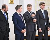 Переговоры президента России Владимира Путина с президентом Казахстана Касым-Жомартом Токаевым. Министр экономического развития России Максим Решетников (второй слева) и первый заместитель министра промышленности и торговли России Василий Осьмаков (в центре) перед началом переговоров.
