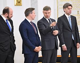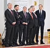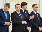 Переговоры президента России Владимира Путина с президентом Казахстана Касым-Жомартом Токаевым в Кремле. Слева направо: министр экономического развития России Максим Решетников, министр транспорта России Андрей Никитин, министр просвещения России Сергей Кравцов и министр природных ресурсов и экологии России Александр Козлов перед началом переговоров.