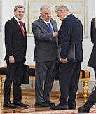 Переговоры президента России Владимира Путина с президентом Казахстана Касым-Жомартом Токаевым в Кремле. Слева направо: генеральный директор АО "Башкирская содовая компания", АО "Березниковский содовый завод" Эдуард Давыдов, основатель компаний РУСАЛ, "Группы ГАЗ" и фонда "Вольное Дело", председатель наблюдательного совета Института экономики роста имени П.А. Столыпина Олег Дерипаска, председатель правления, генеральный директор ПАО "ФосАгро" Андрей Гурьев и генеральный директор, председатель правления АО "Почта России" Михаил Волков перед началом переговоров.