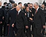 Переговоры президента России Владимира Путина с президентом Казахстана Касым-Жомартом Токаевым в Кремле. Президент России Владимир Путин (в центре) и президент Казахстана Касым-Жомарт Токаев (справа) перед началом переговоров.